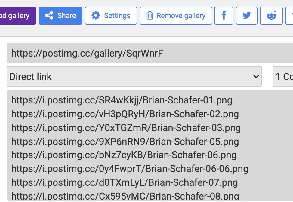 You will see all the images and a list of links. You can get to this list of links after initial upload by clicking on the gallery and choosing the 'share' button.