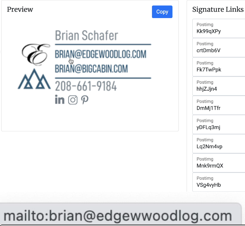 Then use the 'Copy' button to copy the signature, ready for the email signature composition box in outlook.