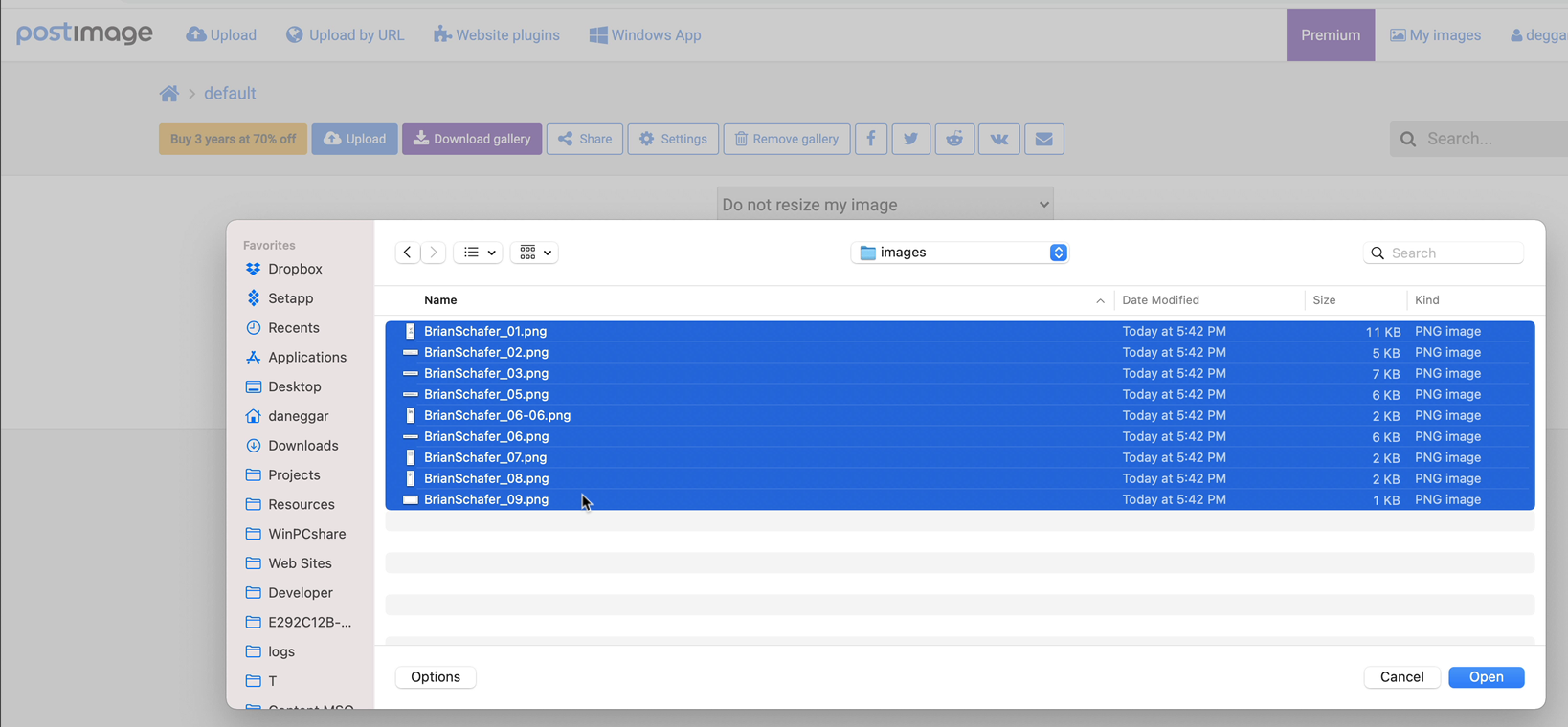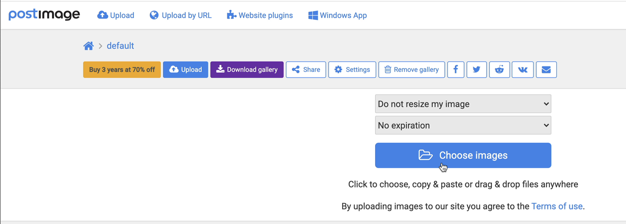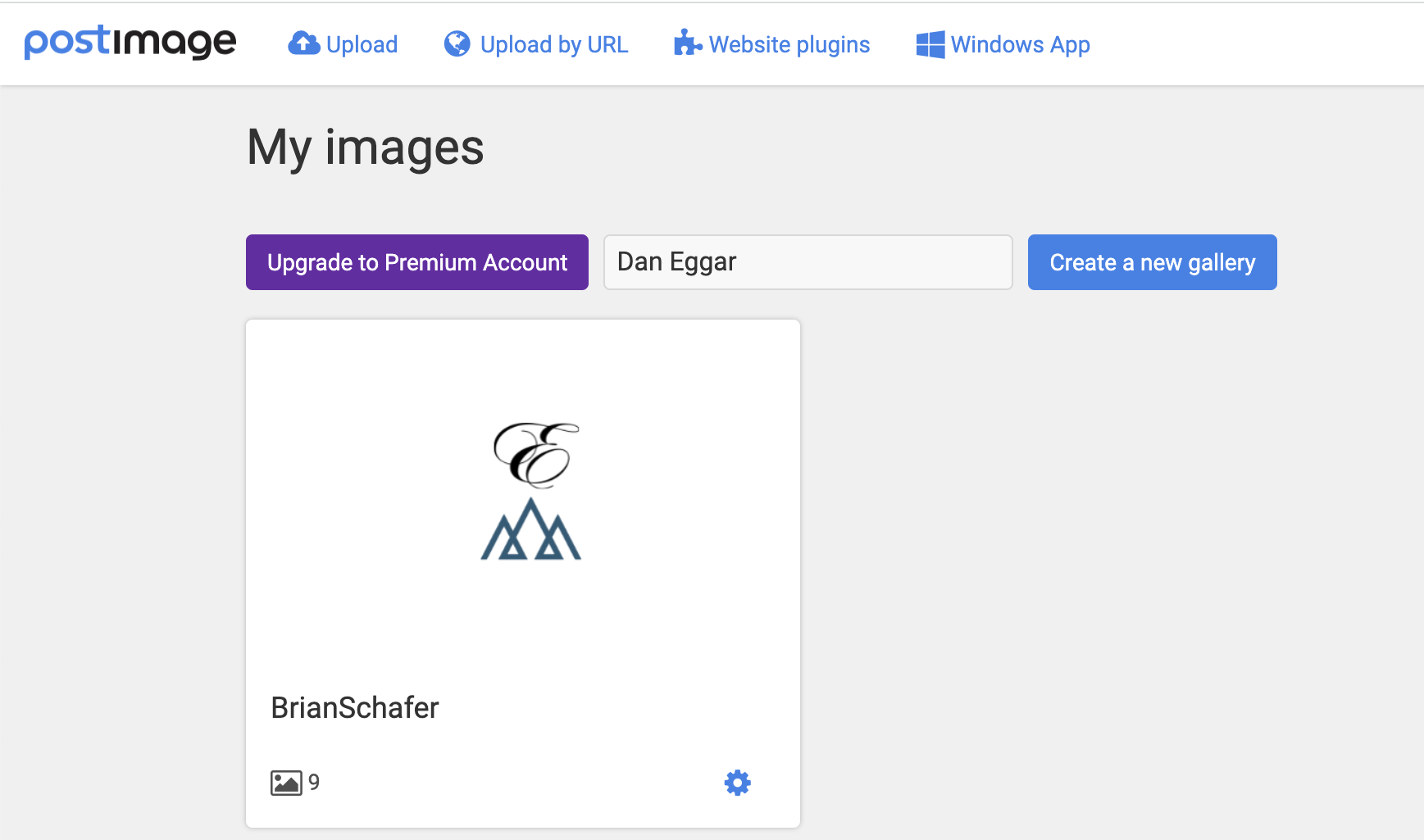 Go to the PostImages website, create an account and log in. You will want an account so you can manage the many images you need for each signature. You will want to make a new gallery for each person. You can create the gallery before or aftter adding the images.
