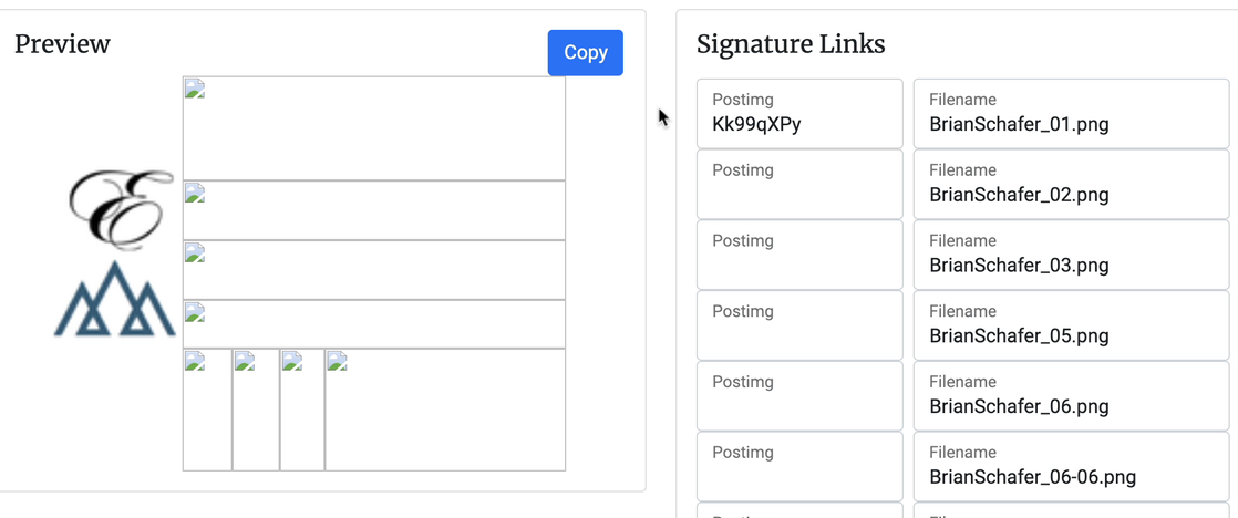 When it loads you will see the layout of the signature and a list of all the images that will need to be linked to the images you upload to PostImages.com - which is next!